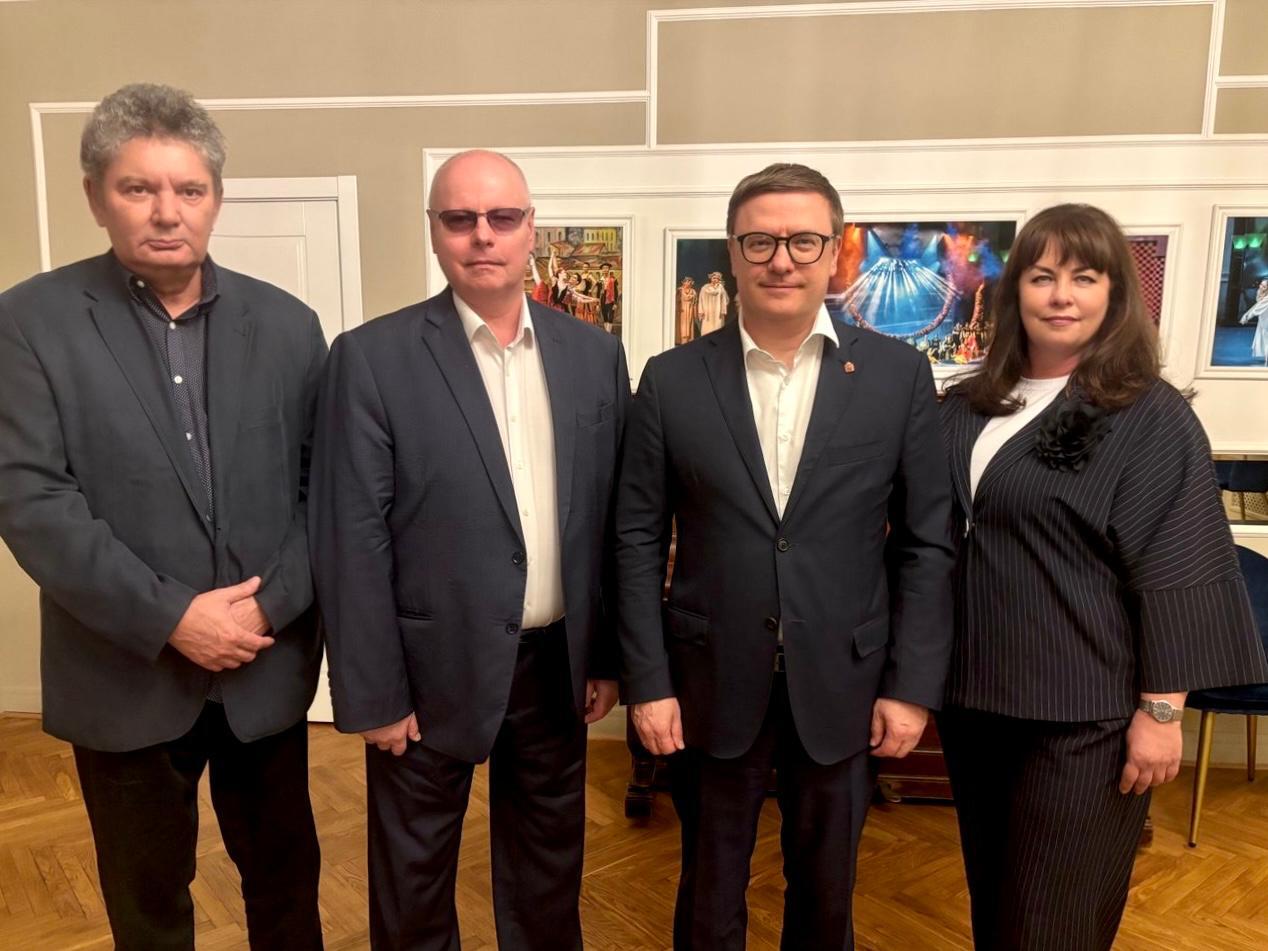 На фото: директор Челябинского театра оперы и балета Владимир Досаев, композитор Александр Агеев, губернатор Челябинской области Алексей Текслер, директор Театра концептуальной музыки Ольга Ермилина.